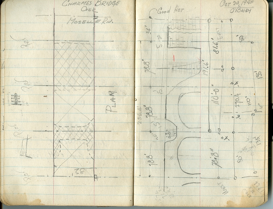 Work completed on two canal bridges, Highway N 57 vic Epinal and two canal bridges on N 57 vic Crevechamps and Flavigny; completed construction of 290' double-single, 1-way, Class 24 Bailey Bridge vic Charmes; reinforcement of Bailey bridge construction (Pont D'Ain) completed; dismanted 150' Bailey bridge, Chatel, and hauled to dump area; moutning water head and current conditions due to heavy rains during period involved the Regiment in an extensive bridge reconnaissance, maintenance, repair and reconstruction program, principally vic Nomexy, Chatel, and Charmes; completed replacement of 1-way bridge vic Chatel with 2-way Class 40 fixed construction (336'6" long X 24' wide); two bridges removed; German bridge and Bailey bridge across Moselle River vic Chatel.