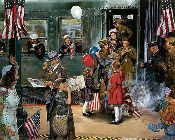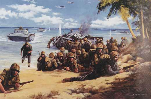 In our HQ building in Albany they just put up a painting that has been in another building. It goes back to when the logistics activity (sort of like a HQ for logistics effort in the USMC) was in Philadelphia. It is an original Vic Guinness (a Marine Major during WWII) so I find it pretty interesting, of course.