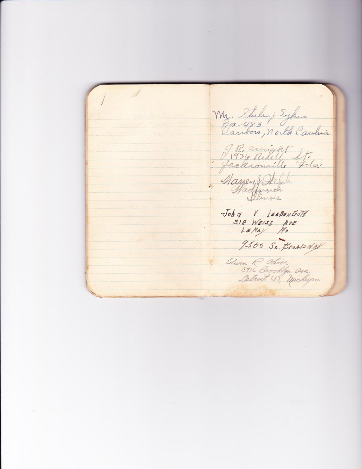 Well Lisa you have knocked my socks off with the Company A panoramic photo, let me see if I can return the favor. A couple of years ago my aunt gave to me my grandfather's address book he carried with him during the war. I checked this book and would you believe it, your father-in-laws name is included in it. I'm certain your father-in-law wrote this in himself because my grandfather was left handed and this is not his handwriting. I'm attaching an image of the page. How cool is this?