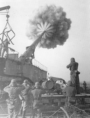 Long time Controversial the sector of Anzio in Italy, following the landing designed to circumvent the Gustav line and pave the road to Rome, was a nightmare for U.S. troops blocked a long time between mountains and beaches. The area was swept day and night by the German artillery. The largest shells were fired by two monstrous 280-mm guns mounted on rails, which swung by more than 40 km distance from the "machine" of 560 pounds! Passing above the head of the troops, and these shells were the sound of locomotives and the GI's had baptized these guns "Anzio Annie" or Anzio Express. It was Krupp K5 long gun whose design began in the late 30s. the Two guns in service in Italy s' called actually Robert" and Leopold. Recovered sabotaged at the end of 1944,One was sent in Maryland to the USA, and another throne… in France with the museum of Cap Gris Nez.